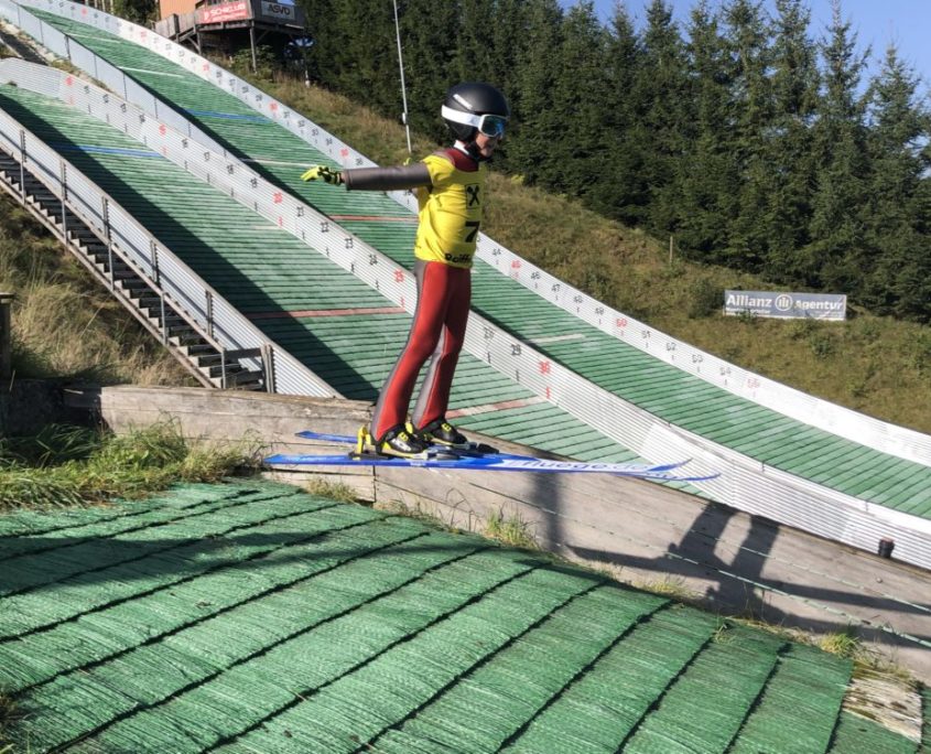 Gewohnt starke Leistungen auch von Lukas Mühlbacher: Lukas lag nach dem Springen in der Klasse Schüler II auf Platz 2 und sicherte sich im Laufbewerb den Sieg.